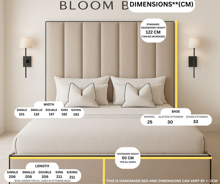 - All measurements refer to the outer dimensions of the bed frame, including the widest and longest points, such as the headboard width and total frame length. These beds are made to suit UK standard mattress sizes.