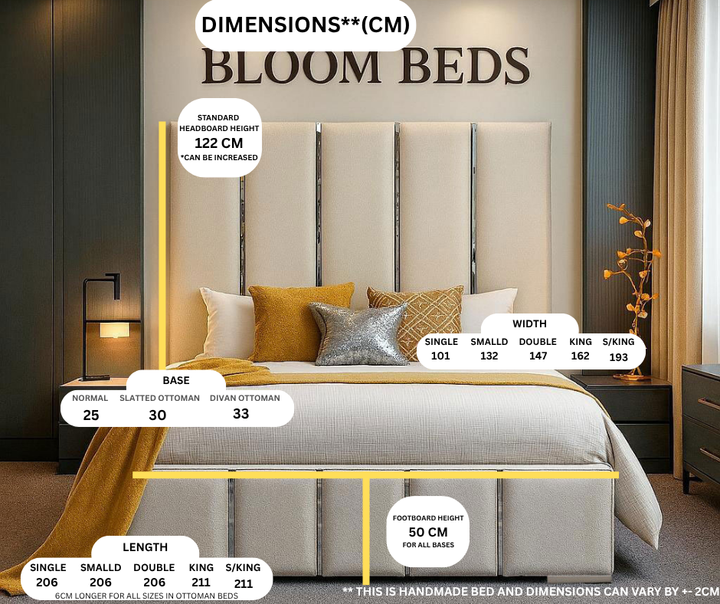 - All measurements refer to the outer dimensions of the bed frame, including the widest and longest points, such as the headboard width and total frame length. These beds are made to suit UK standard mattress sizes.