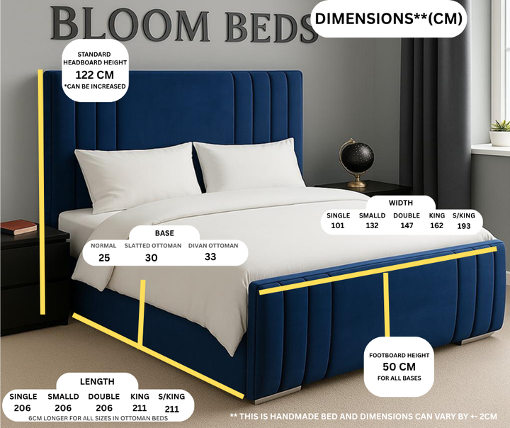 - All measurements refer to the outer dimensions of the bed frame, including the widest and longest points, such as the headboard width and total frame length. These beds are made to suit UK standard mattress sizes.