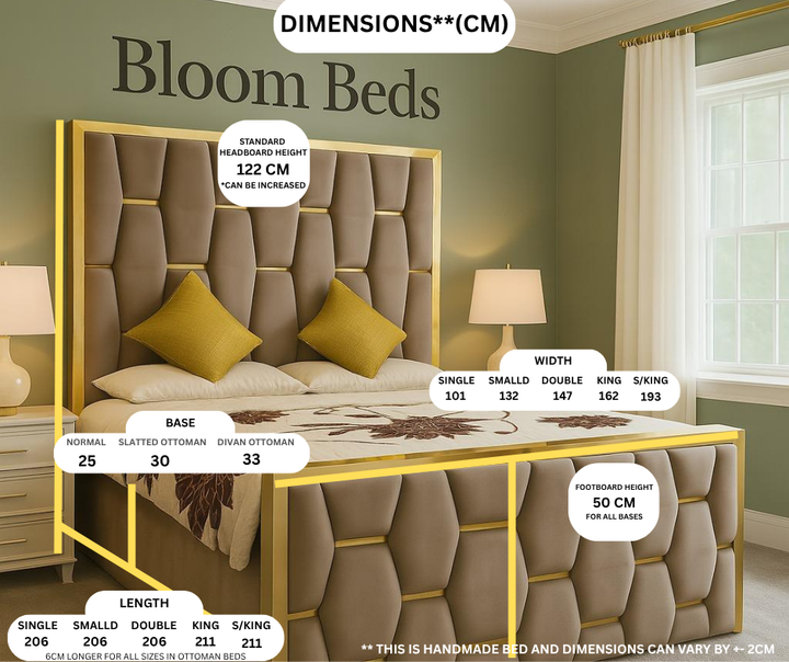 - All measurements refer to the outer dimensions of the bed frame, including the widest and longest points, such as the headboard width and total frame length. These beds are made to suit UK standard mattress sizes.