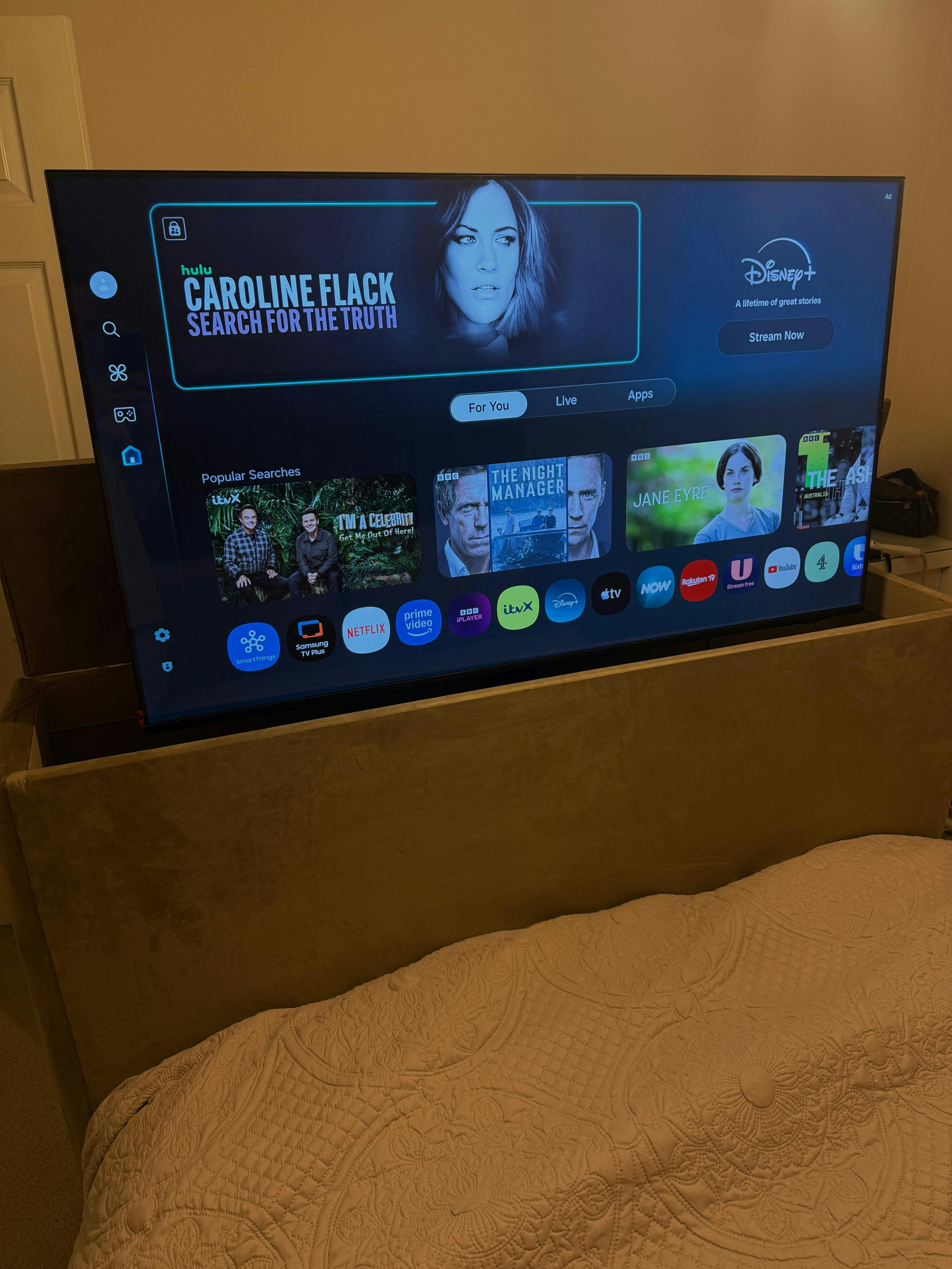 Whether you’re watching a film, enjoying boxsets, or simply relaxing, the Solara makes it effortless. At the touch of a button, your screen rises smoothly from the footboard, ready for movie nights in bed, and disappears just as easily when not in use.