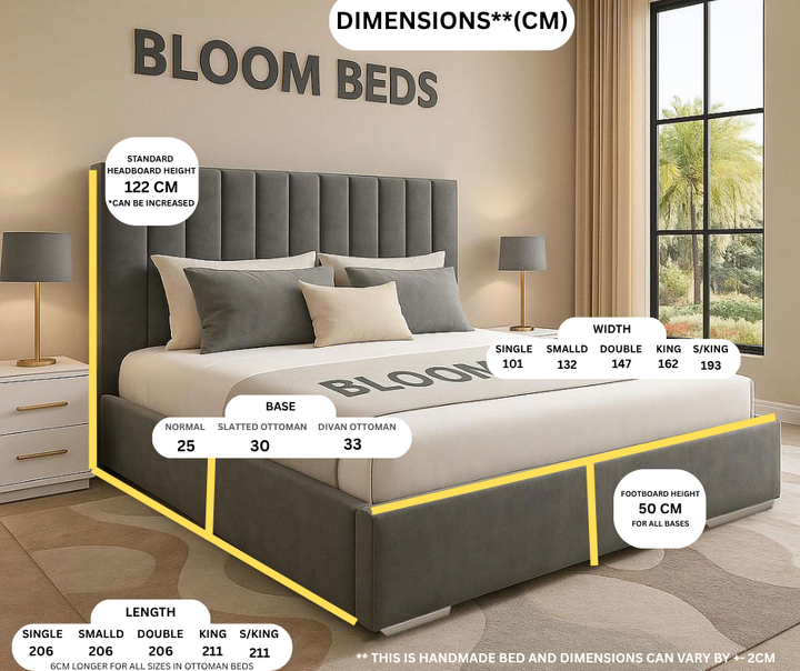 - All measurements refer to the outer dimensions of the bed frame, including the widest and longest points, such as the headboard width and total frame length. These beds are made to suit UK standard mattress sizes.