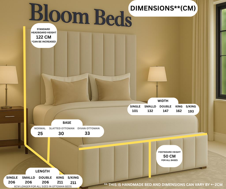 - All measurements refer to the outer dimensions of the bed frame, including the widest and longest points, such as the headboard width and total frame length. These beds are made to suit UK standard mattress sizes.